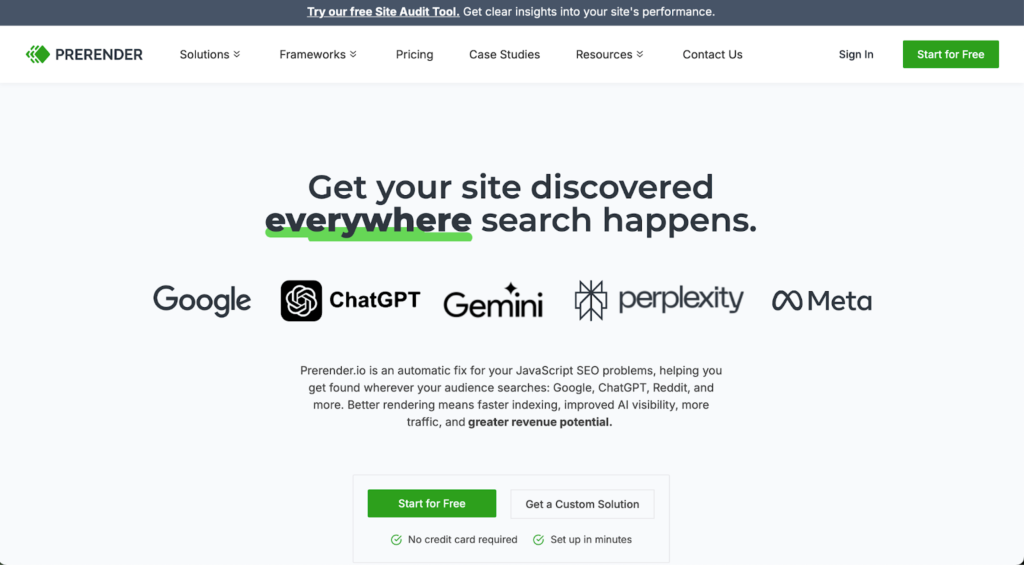 If your site uses heavy JavaScript, client-side rendering, or dynamic content, AI bots may not be able to see your pages at all, and Prerender solves that specific problem.