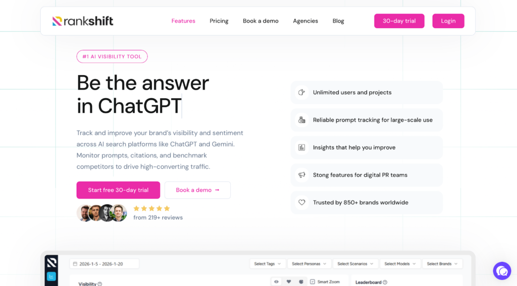 RankshiftReliable prompt tracking at scale30-day free trial (paid from €77/month ~$92/month)