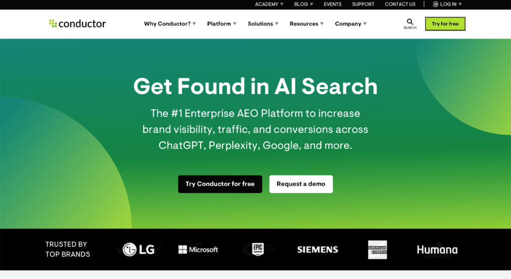 Conductor is an established enterprise SEO platform that has expanded into AI visibility tracking. It’s built for organizations that need structured programs; choosing topics, balancing branded and unbranded prompts, selecting engines, and building repeatable tracking strategies.