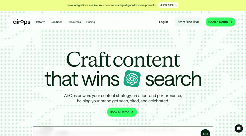 • Unique integration of content ops and AI visibility