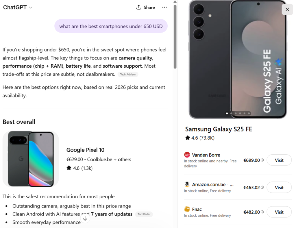 What this means practically: optimizing your Google Shopping feed is not just an advertising task anymore. It is core ChatGPT visibility work.