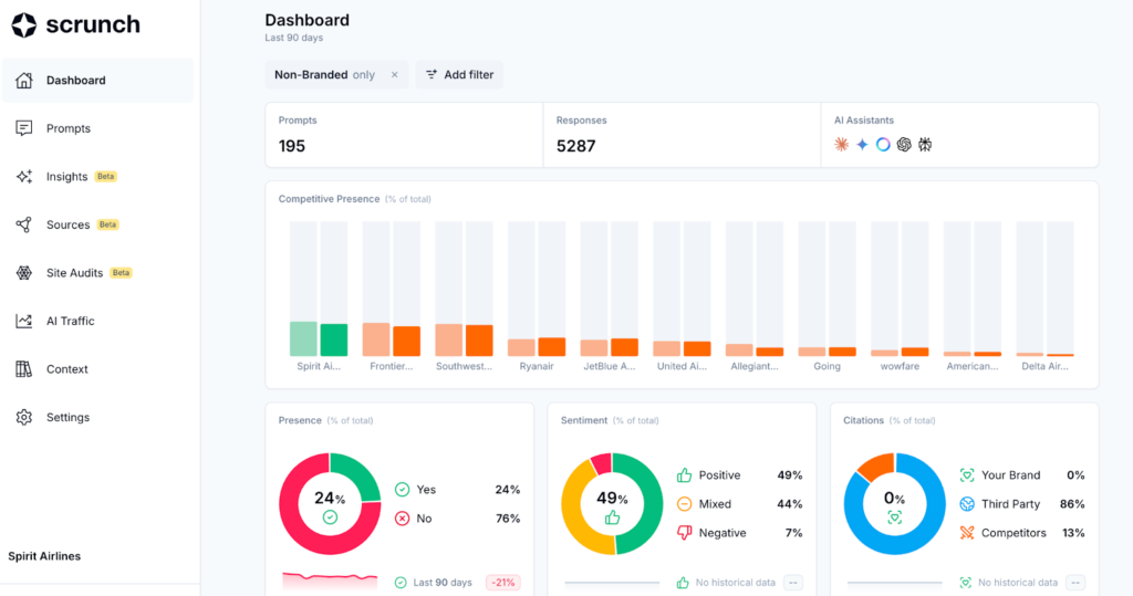Scrunch AIBrand and AI presence monitoringFocus on brand safety and AI presence across regions and personas~$100/mo