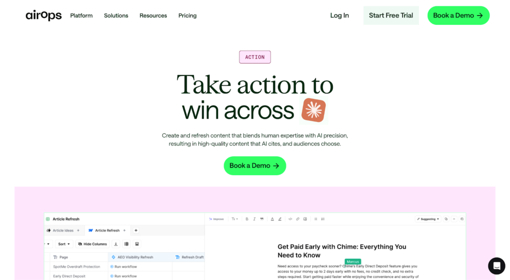 AirOps was primarily built for teams whose bottleneck isn’t “we don’t know what’s happening in AI search” but rather “we know what’s happening and we can’t update 500 pages fast enough to do anything about it.”