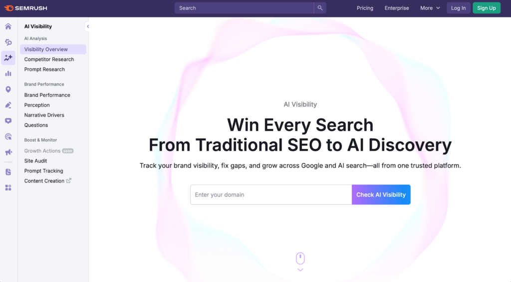 The AI Visibility Toolkit is available at $99/month per domain, or bundled into Semrush One starting at $139.95/month. Requires an active Semrush base subscription.
